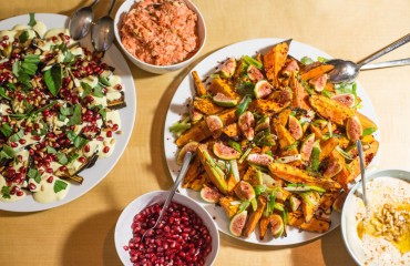 Die Bohnen 2 Minuten in reichlich kochendem Wasser blanchieren und und in kaltem Wasser abschrecken. Die Hälfte der Bohnen enthäuten.