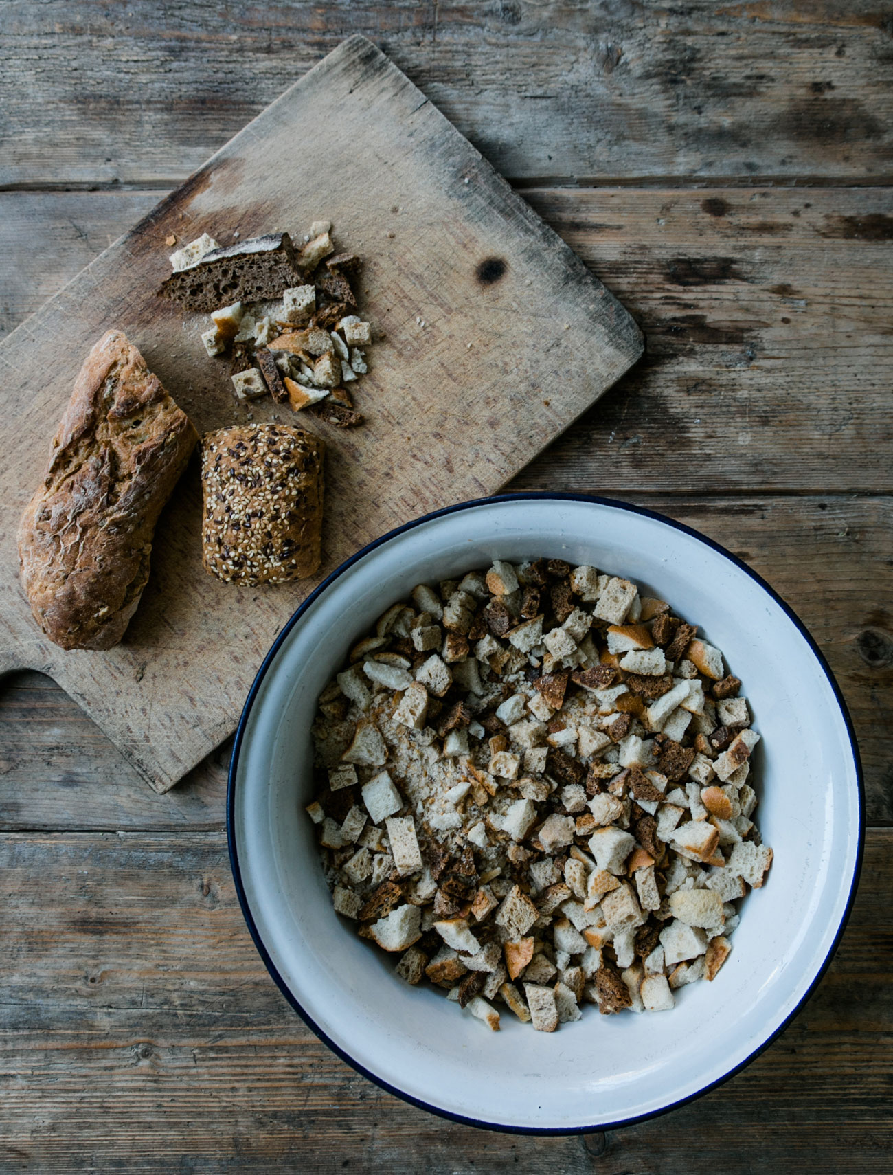 Ich habe also mit diesem Buch gekocht. Sogar eine GULASCHSUPPE. Also echt jetzt. Und die wurde gegessen. Ein Lieblingsrezept unter all diesen tollen in dem Buch sind bisher die Brotwaffeln. Wir haben nämlich nicht erst seitdem unser großer Holzbackofen in der Werkstatt endlich läuft und der Held jedes Wochenende unzählige Brotvarianten ausprobiert, immer eine ganze Menge altbackenes Brot. Hier ein Stück Baguette vom Wochenende, da eine letzte Kante des Vollkornbrotes. Bei 5 Personen kommt da so einiges zusammen. Und ich kann das einfach nicht wegschmeißen. Knödel sind bei den Kindern nicht so beliebt. Aber Brotwaffeln sind der Hit. Ganz einfach zuzubereiten. Optisch ein Knaller. Und mit einem Häufchen Speck obendrauf ein neues Lieblingsgericht bei den Kindern.
