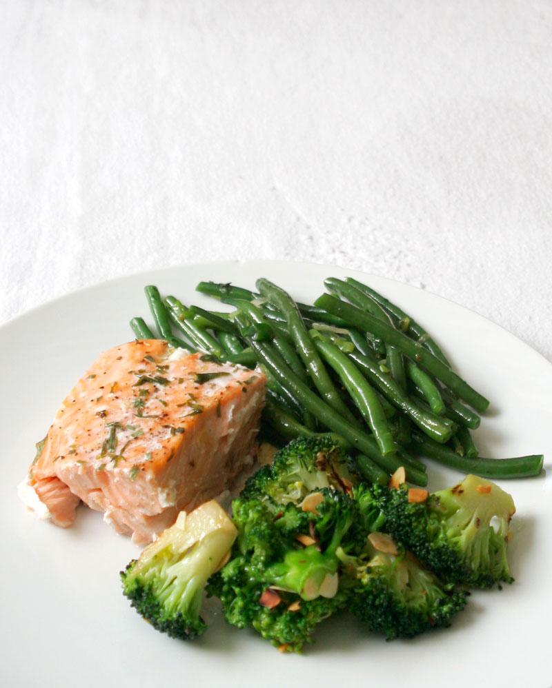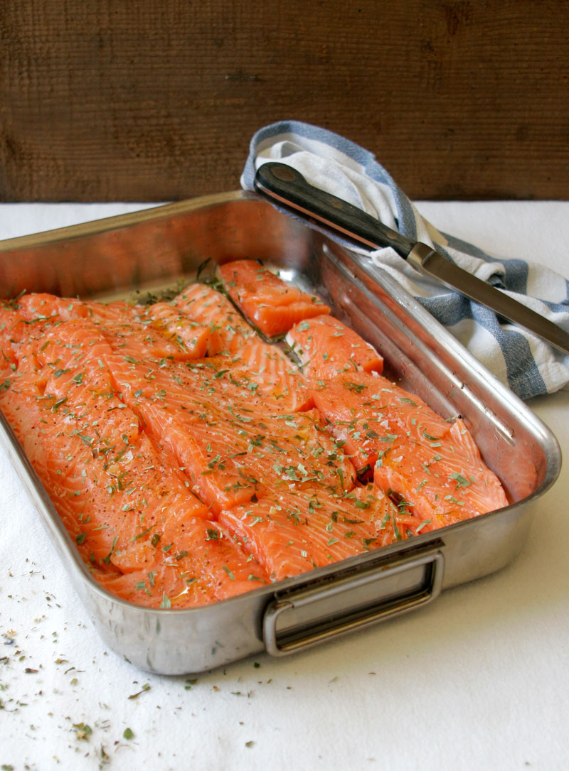 Wochenende und die Omi ist zu Besuch. Das bedeutet, dass sich die Wäschegebirge in der Waschküche wie durch Zauberhand in wohlsortierte und gebügelte Wäsche verwandeln, dass die Kinder rundum glücklich mit der Omi skaten gehen während man selber das Joggingründchen drehen kann, dass der Held gemeinsam mit dem Küchenazubitochterkind in Ruhe in der Küche brutzeln kann und es was Leckeres zwischen die Zähne gibt. Heute Lachs. Den mögen alle gerne, ist easypeasy zubereitet und falls was übrig bleibt, wird er im Laufe der Woche einfach kalt zum Salat oder mit Soße zur Pasta gegessen. Wir nehmen deshalb immer gleich eine ganze Lachsseite.