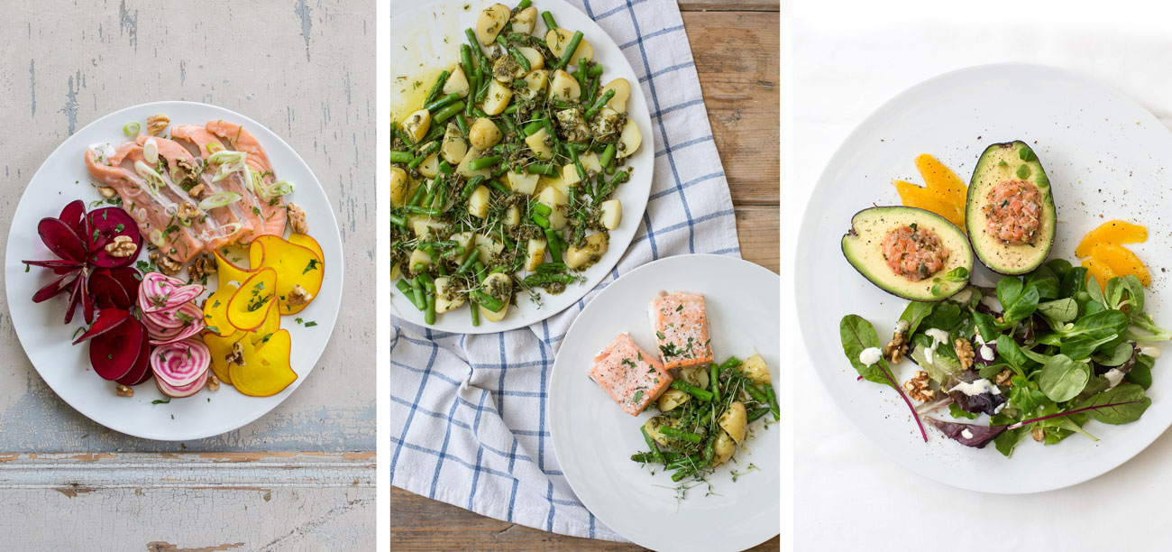 Auch ein Lieblingshit im Heldenhaushalt: Salat mit Lachs, Avocado, Walnüssen und der besten aller Salatsoßen. Ich schwöre, mit diesem Dressing werden selbst eure Kinder zu Salatessern.