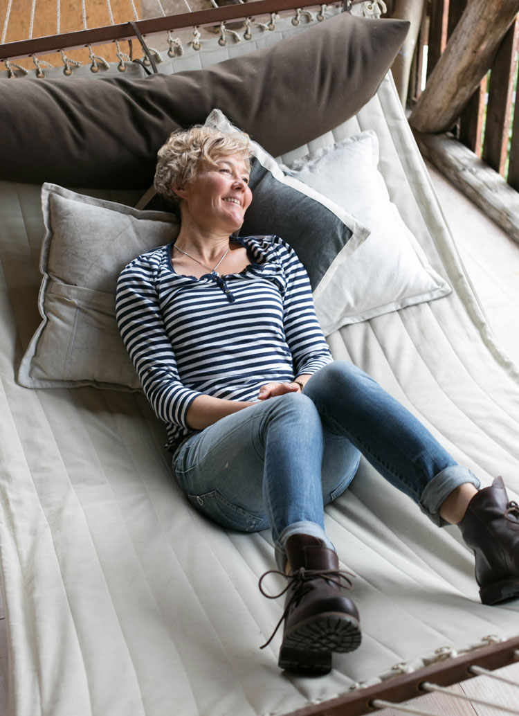 Steffi ist, wie alle Allgäuer, die ich bisher kennengelernt habe eine superfitte Sportlerin. Alpenüberquerung mit dem Fahrrad ist bei denen fast Standard. Immer sind alle in der wunderschönen Landschaft unterwegs und bewegen sich. Wenn Steffi bei uns ist, wird das allerdings sofort unterbunden. Sie wird in die große Hängematte gezwungen, bekommt ein Glas Sekt in die Hand und wird ordentlich bekocht. Dieses Mal durfte sie auch kurz selber in die Küche und hat uns gezeigt, wie man a gscheide Brotzeit macht. Mit Obazda. Sagradi. Himmel, Arsch und Zwirn.