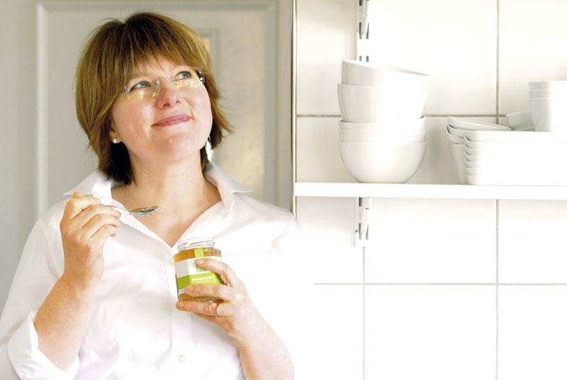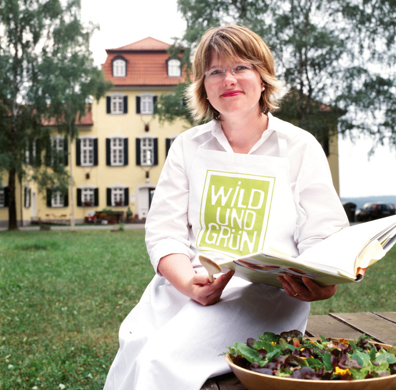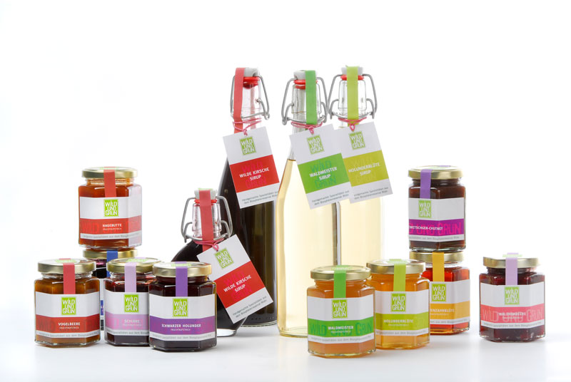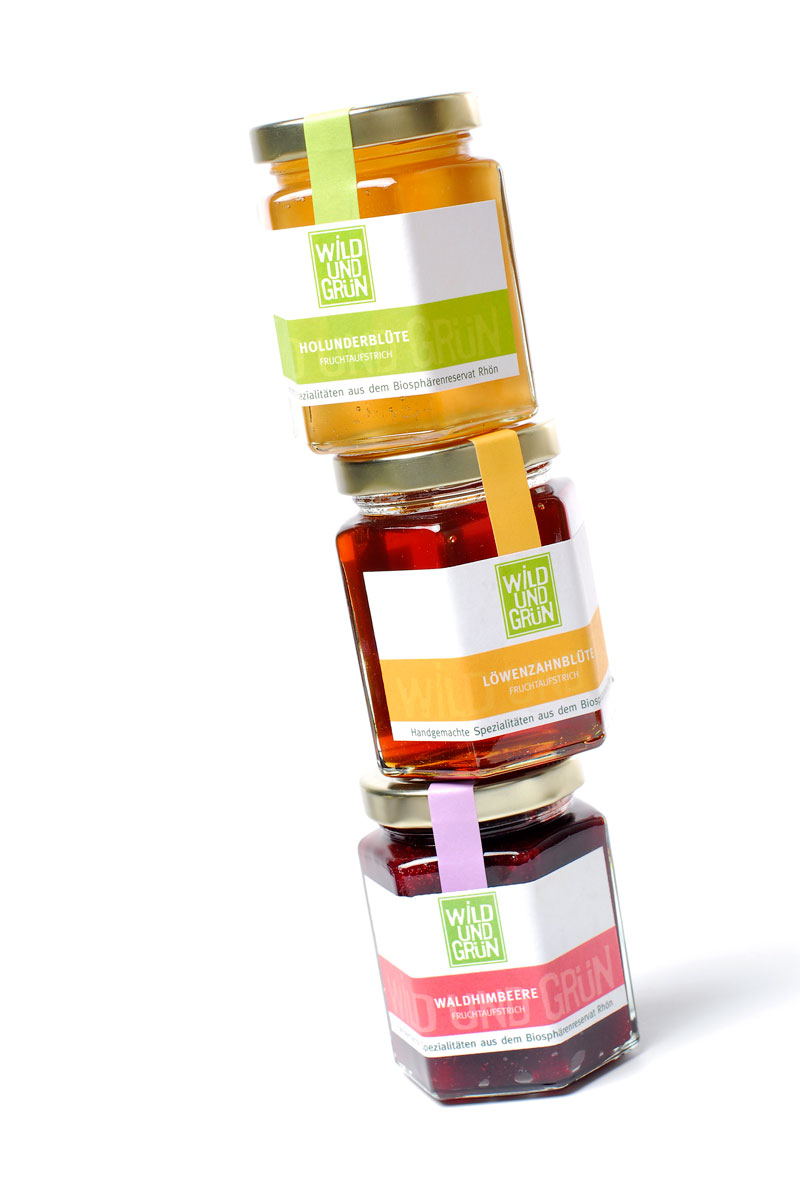 Zur Fasanerie gehörte auch ein kleines Lädchen, in dem wir Dinge wie Postkarten, Servietten, Dekoartikel und Saisonales verkauft haben. Hin und wieder auch selbstgekochte Spezialitäten aus unserer Küche. Die waren immer ruckzuck ausverkauft. Mir selber blieb leider keine Zeit, die Spezialitäten regelmäßig und in größeren Mengen herzustellen. In der Region gab es jedoch viele Frauen, die eine berufliche Perspektive suchten. Wir haben uns also zusammen getan. Ich habe die Marke und das Konzept entwickelt und die Frauen haben Wildbeeren gesammelt und nach meinen Rezepten Marmelade, Sirups und Kuchen im Glas hergestellt. Ich hatte mich in dieser Zeit schon intensiv mit der Wildkräuterküche auseinandergesetzt und viel mit den Kräutern und Früchten gearbeitet, die im Biosphärenreservat der Rhön quasi vor der Haustüre wachsen. Der Name der Marke ist deshalb „WILD UND GRÜN“.