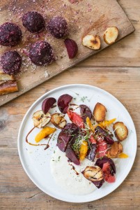 Rote Bete in Salzkruste mit Orangen, Grapefruit und Meerrettichmayonnaise