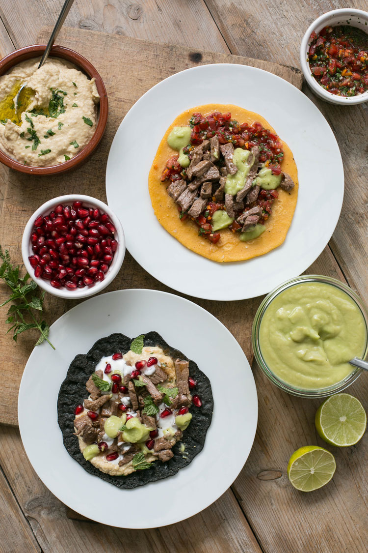 Ich bin eine Küchenschabe. So heißt das bei uns wenn man am Herd nix kann und nur für die niederen Arbeiten wie Spülen, Wegräumen und in Ausnahmefällen auch für kleinere Zuarbeiten eingesetzt wird. Wenn ich ein Kochbuch geschenkt bekomme, hat das ganz sicher nichts damit zu tun, dass jemand annimmt, ich würde auch daraus kochen. Dafür habe ich ja meinen Helden. Ich bekomme Kochbücher, wenn sie toll fotografiert und schön gestaltet sind, so wie Salt & Silver, Reisen, Surfen, Kochen Dieses inspirierende Buch verbindet abenteuerliche Geschichten und sehr coole Fotos mit jeder Menge Rezepten. Geschrieben von zwei Hamburger Jungs, die ein Jahr lang mit Ihrem Surfbrett unterm Arm quer durch Lateinamerika gereist sind, immer auf der Suche nach den besten Wellen und geheimsten Rezepten. Vor allem mit einer Menge unkomplizierten Street Food Rezepten, die alle so richtig gut aussehen. Weil ich das selber nicht kochen kann, habe ich mal eine Bestellung beim Helden eingereicht und am Wochenende haben wir eine ordentliche Tacoschlacht hingelegt. Lamm-Tacos mit Hummus, Avocado Salsa, Granatapfelkernen und Minzjoghurt.