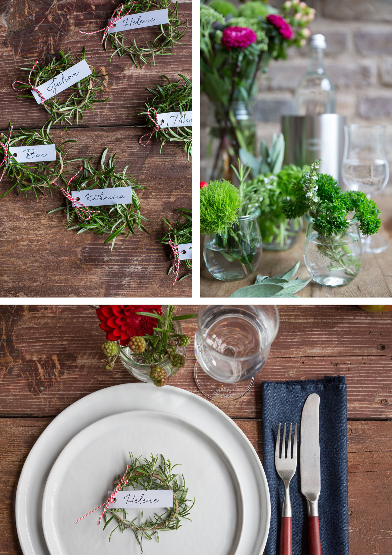 Besuch darf natürlich trotzdem nicht fehlen. Für den decken wir in der kälteren Jahreszeit auch gerne mal den Tisch besonders schön. Beim Grillen im Sommer gibt es weder Tischdeko noch Schnickschnack, aber wenn es draußen dunkel und kalt wird, muss man es sich halt drinnen ein bisschen hübsch machen. Ein Tischdeckenfan bin ich nicht so, aber gerne dürfen ganz viele Kerzen brennen und die Gäste mit einer persönlichen kleinen Deko auf ihrem Teller begrüßt werden.