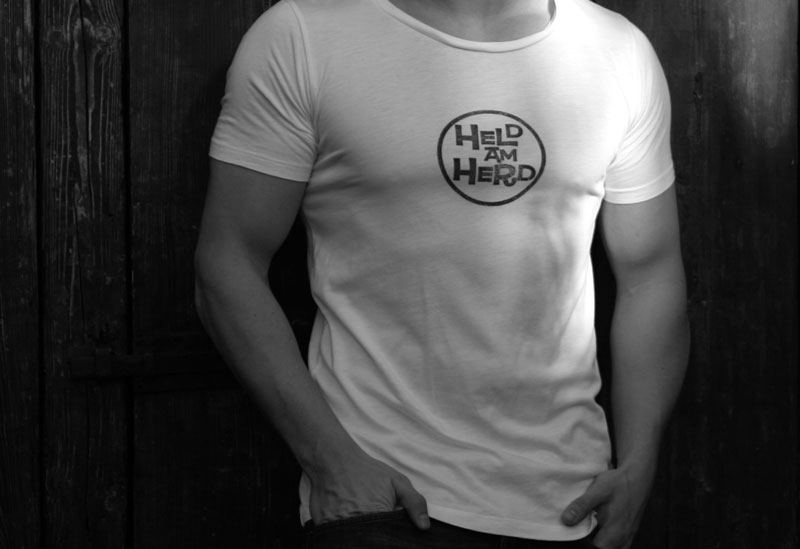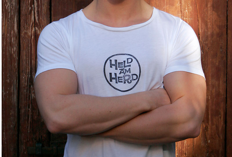 Schon seit längerer Zeit soll es den Helden auch als T-Shirt geben. Aber das ist ja gar nicht so leicht, wie man sich das vorstellt. Das Shirt soll gut geschnitten sein, die Verarbeitung sorgfältig, die Herstellung umweltfreundlich und ohne Ausbeutung der Menschen, die an dem Prozess beteiligt sind. Es soll angenehm auf der Haut sein und letztlich soll man einfach auch cool in dem Shirt aussehen. Einige Muster haben es nicht in die engere Auswahl geschafft aber wir nähern uns dem Ziel. Die ersten Druckproben sind gemacht und mein lieber Neffe hat sich als Supermodel zur Verfügung gestellt. So knackig und durchtrainiert kann man sich natürlich auch einen Sack überziehen und sieht trotzdem gut aus. An dem perfekten Helden T-Shirt feilen wir noch ein kleines bisschen aber bald ist es zu haben.