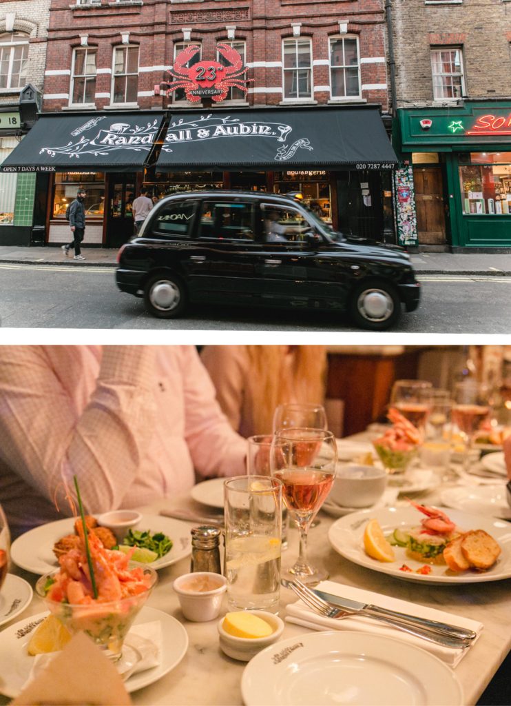 Nach einer kleinen Verschnaufpause im Hotel ging es am Abend in das schon seit über 23 Jahren legendäre Fish- und Seafood Restaurant Randall and Aubin in Soho. Ein überaus quirliges, lebendiges Restaurant mit dem liebenswertesten Service, den man sich denken kann. Und riesigen Platten mit köstlichstem Seafood. Perfekte Begleitung für den Rosé, den wir nun ausgiebig kosten konnten. Er schmeckt frisch, knackig und ein klein wenig floral. Ganz wunderbar für laue Sommerabende. Ein paar von uns haben nach all den Köstlichkeiten auch noch ein Dessert geschafft, das einfach himmlisch war. Wir alle waren nach diesem Abend froh, dass unser Hotel in Fußnähe lag und wir somit nach dem ausgiebigen Menu und dem ein oder anderen Glas Wein noch einen Spaziergang durch das nächtliche London machen konnten.